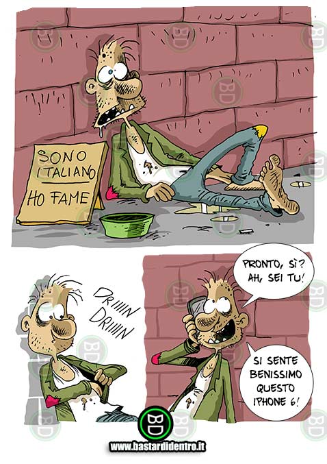 Visto ieri sera alla trasmissione “La Rabbia”: decine di ragazzi giovani e cresciuti, disoccupati, vivono con la mamma mantenuti dai genitori. Tutti in fila alle sei di mattina per comprare il nuovo IPhone. Coi soldi di mamma e papà o dei nonni. Un fornaio che non trova personale dipendente, va presso la suddetta marmaglia e offre lavoro: assunzione immediata per fare il pane, da mezzanotte alle otto. Non ne ha trovato uno che accettasse, tutti a fare i bamboccioni parassiti delle famiglie, ma soprattutto della società. Poi però tutti a frignare che c’è la crisi, la disoccupazione… L’italiano medio non si merita nulla, anzi si merita ciò che ha.