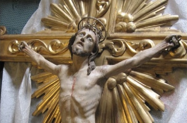 questo crocefisso della fine ‘700 è stato donato da un privato al comune d’un villaggio su palafitte in quel di Cremona con l’unico vincolo che fosse visibile al pubblico.