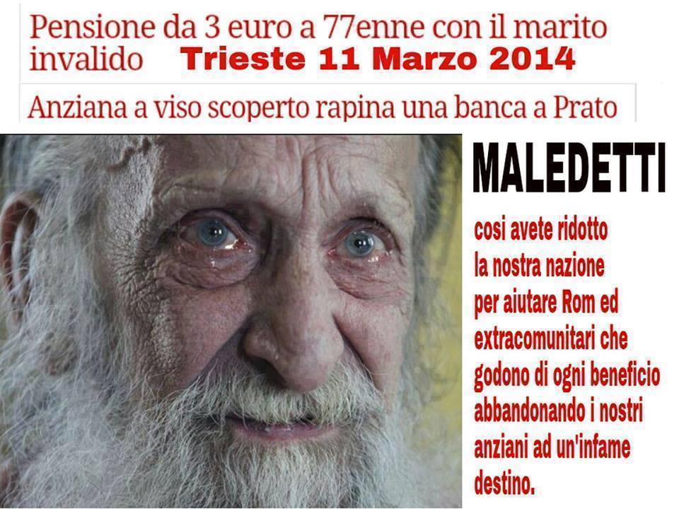 Quanti anziani aiuterebbero se si dessero una “tagliatina” e non solo alla pensione….anzi gliela darei io la tagliatina. Su stà cosa mi fanno ancora più schifo.