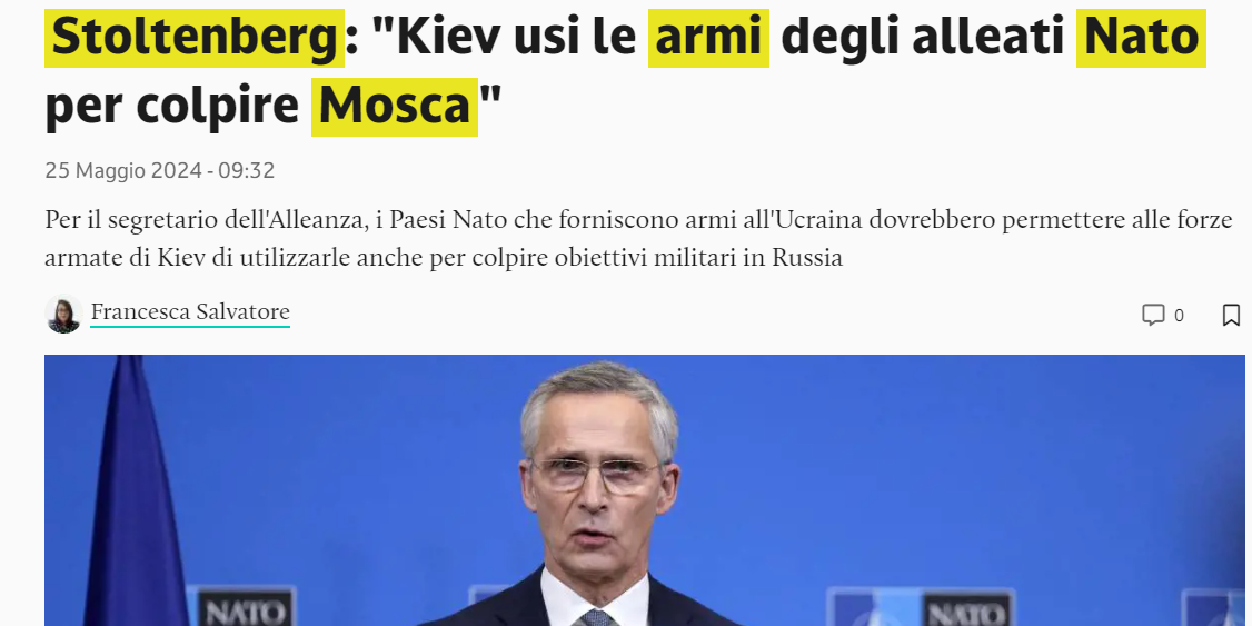 infatti si chiama stolt….. questo demente vuole la guerra globale a tutti i costi !!! Pubblicato daergatto25 Maggio 2024Pubblicato in: Senza categoria Condividi: Fai clic per condividere su X (Si apre in una nuova finestra) X Fai clic per condividere su Facebook (Si apre in una nuova finestra) Facebook Mi piace Caricamento... Pubblicato da ergatto curiosi..... Visualizza più articoli