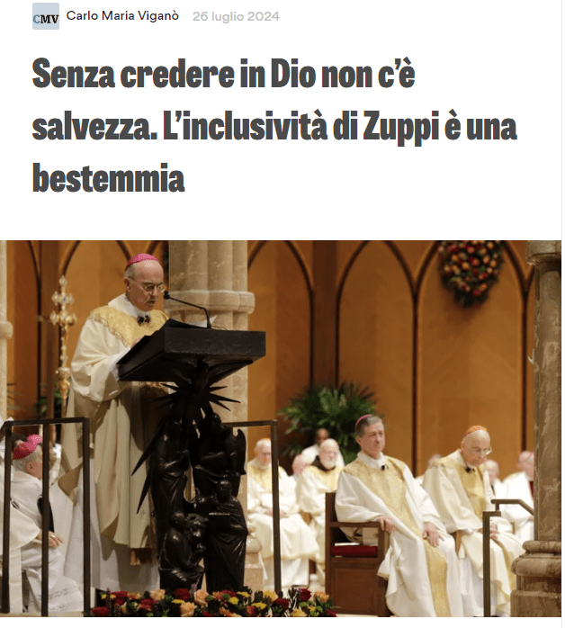 io sto con Vigano’ Pubblicato daergatto27 luglio 2024Pubblicato in: Senza categoria Condividi: Fai clic per condividere su X (Si apre in una nuova finestra) X Fai clic per condividere su Facebook (Si apre in una nuova finestra) Facebook Mi piace Caricamento... Pubblicato da ergatto curiosi..... Visualizza più articoli