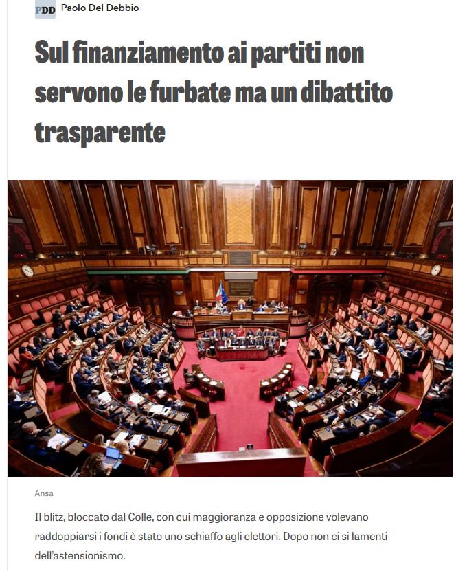 nessun finanziamento pubblico: si arrangino con i loro iscritti !!!
