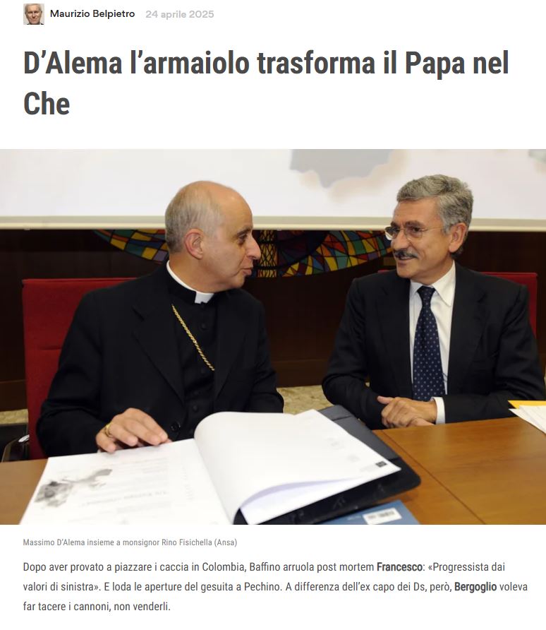 fanno davvero vomitare tutti coloro che hanno cavalcato e manipolato le idee bergogliane Pubblicato daergatto24 aprile 2025Pubblicato in: Senza categoria Condividi: Fai clic per condividere su X (Si apre in una nuova finestra) X Fai clic per condividere su Facebook (Si apre in una nuova finestra) Facebook Mi piace Caricamento... Pubblicato da ergatto curiosi..... Visualizza più articoli