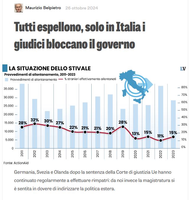 Egiziano, clandestino e arrestato per molestie: impossibile rimpatriare gli stupratori Esplora: Fabio Rubini 26 ottobre 2024 Quello che andiamo a raccontarvi è un caso scuola che fa capire come l’ostracismo di una parte della magistratura verso le politiche di contrasto all’immigrazione irregolare, potrebbe causare danni incommensurabili al nostro Paese. Siamo a Reggio Emilia nel marzo 2024.Continua a leggere “NON SO DI CHI SIA LA COLPA MA LA GIUSTIZIA FA VERAMENTE SCHIFO !!!”