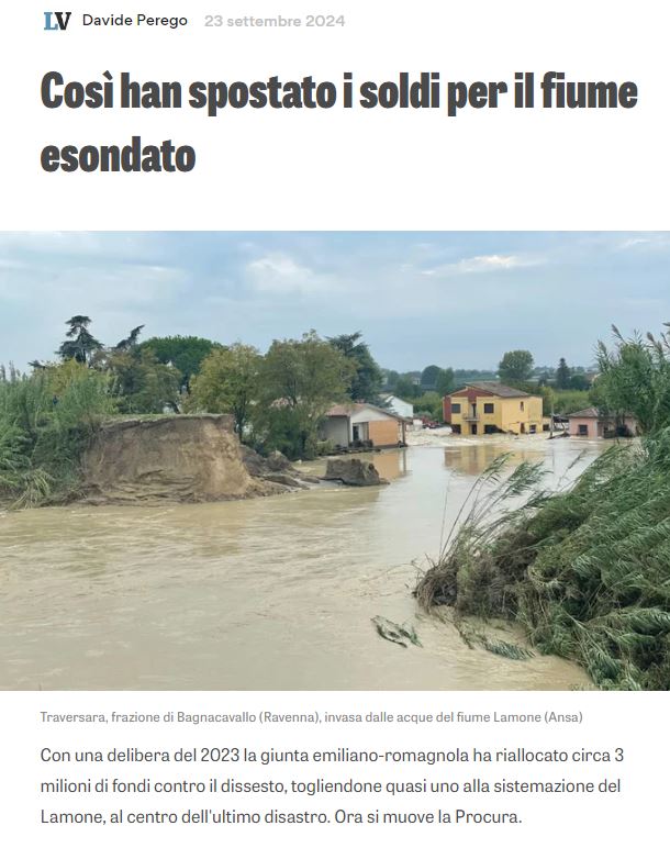 Alluvione in Emilia Romagna, la sinistra usa il cambiamento climatico per non affondare nella melma delle sue colpe Pietro Senaldi 23 settembre 2024 Chi non ricorda l’immagine di Angelo Bonelli che, meno di due anni fa, in Parlamento estrae dalle tasche due pietre prelevate sul greto del fiume Adige in secca, a Verona, e accusa GiorgiaContinua a leggere “ABBIATE PIETA’ QS HA AMPIAMENTE DIMOSTRATO DI NON ESSERE IN GRADO D’INTENDRE E VOLERE…”