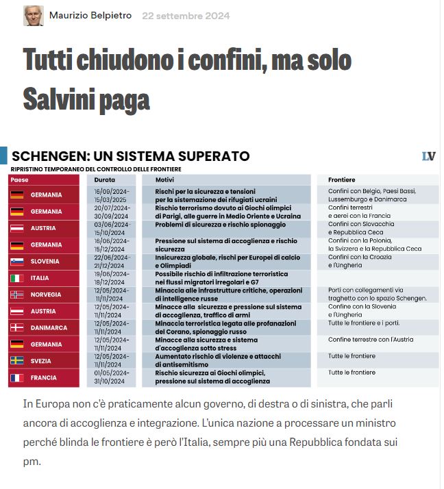 SALVINI NON MI E’ MAI PIACIUTO MA QUESTA IGNOBILE FARSA CON SCHIFOSI EXAMICI SMEMORATISSIMI, CON AVVOLTOI D’ OGNI CATEGORIA CHE SPECULANO CON L’UNICO CHE HA FATTO QUELLO CHE ORA STANNO FACENDO PARECCHI STATI EUROPEI DIMOSTRA CHE SIAMO UN POPOLO DI RITARDATI MENTALI OLTRE CHE DI FOTTUTISSIMI FURFANTI !