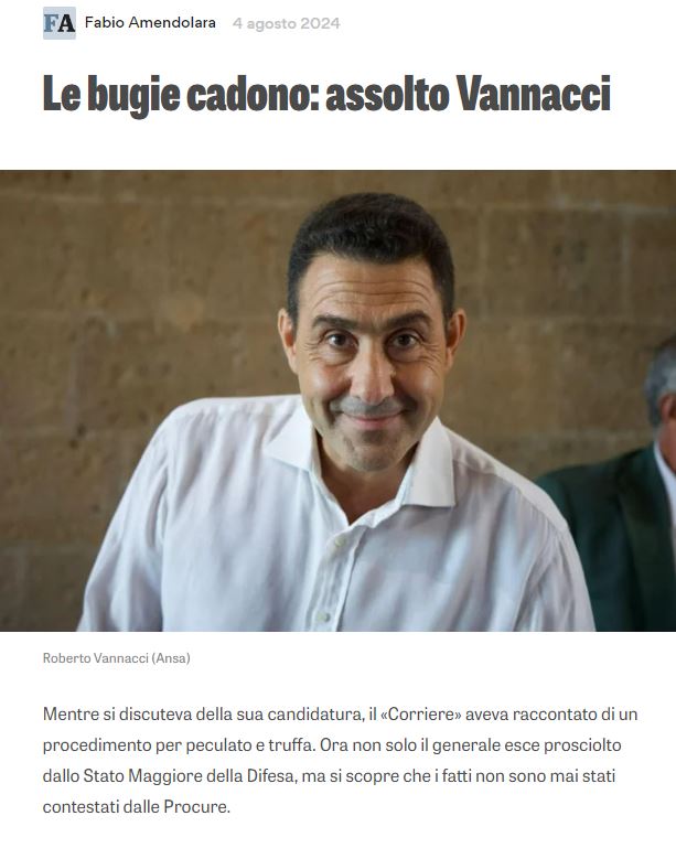 SE IO FOSSI VANNACCI CHIEDEREI I DANNI AL CORRIERE PER UNA NOTIZIA FALSA E CALUNNIOSA