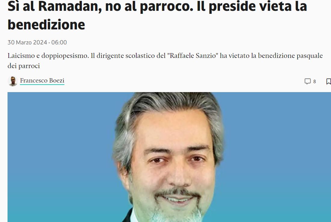 L’Occidente si sta arrendendo all’Islam 30 Marzo 2024 – 10:00 Essere rispettosi significa accettare tali differenze culturali o religiose. Il rispetto non implica, tuttavia, la rinuncia alle proprie tradizioni allo scopo di non offendere in qualche modo coloro che coltivano altre usanze Vittorio Feltri 11 Ascolta ora: “L’Occidente si sta arrendendo all’Islam” Buongiorno Direttore Feltri, leiContinua a leggere “noi siamo sempre i primi della classe a fare gli idioti”