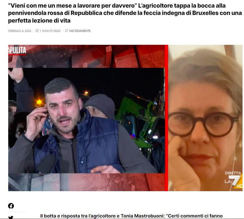 Repubblica, fango sugli agricoltori: per il giornale di Elkann sono vandali Esplora: Gianluigi Paragone 05 febbraio 2024 In questi giorni il giornale della famiglia Elkann sta menando sugli agricoltori, colpevoli di essere sussidiati e di essere dei vandali. Addirittura Massimo Giannini si è esercitato su una strana similitudine definendo gli agricoltori il piazza come “moderni kulaki”. Chi erano i kulaki? EranoContinua a leggere “respubica sempre piu’ in basso :”