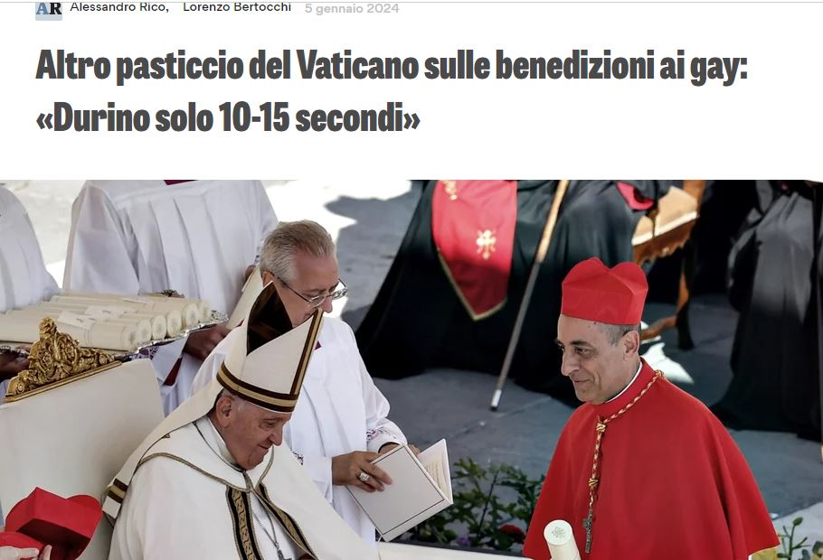 Benedizioni lampo Uno degli aspetti del comunicato che sta suscitando più dubbi è quello relativo alla ricezione pratica. Già Fiducia supplicans, sostenendo di voler perseguire l’obiettivo di non generare confusione tra matrimonio e unioni cosiddette irregolari o formate da persone dello stesso sesso, oltre a prevedere che non sia “svolta contestualmente ai riti civili di unione”, si soffermava pure sugli “abiti, gesti oContinua a leggere “MERASMI VATICANI:”