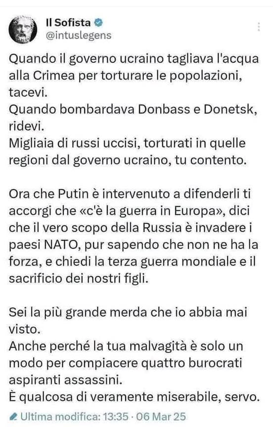 Manifestazione pro-Ue, pagato anche il soggiorno agli ospiti “vip”. E Michele Serra se ne lava le mani Fabio Rubini 21 marzo 2025 I vip rossi pro Europa intervenuti alla manifestazione di sabato scorso a Roma, erano talmente convinti dell’importanza di partecipare che non si sarebbero nemmeno pagati il biglietto del treno e la stanza d’albergo. Ci ha pensatoContinua a leggere “hanno il dna disonesto !!”