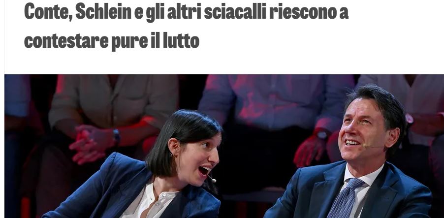 “Parossismo celebrativo”. Assente ai funerali del Cav: l’assurda giustificazione di Conte 15 Giugno 2023 – 14:24 Le assurde motivazioni Conte sull’assenza ai funerali di Stato di Berlusconi: “Rispetto alla sua famiglia e al Movimento”. Ma nessuno in buona fede avrebbe ritenuto sbagliata la sua partecipazione Marco Leardi IL POVERETTO HA SEMPRE DIMOSTRATO DI VALERE MENO DEL NULLA , INFATTIContinua a leggere “ennesima figura emmerde :”