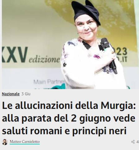 MOSTRA ‘LOVE ME GENDER’, BAMBINI COSTRETTI A GUARDARE GAY NUDI 🌈 GIUGNO 3, 2023 VOX 1 COMMENTO BREAKING NEWS, ESTERI GERMANIA: ARRIVANO LE STRISCE PEDONALI GAY 🌈 GIUGNO 3, 2023 VOX 1 COMMENTO BREAKING NEWS, INVASIONE, LOMBARDIA PESCHIERA, VENDICATE LE VIOLENZE. ITALIANI HANNO PESTATO I ‘MARANZA’ AFRICANI: “QUESTA È CASA NOSTRA” GIUGNO 3, 2023 VOX 4 COMMENTI BREAKING NEWS, POLITICA LE ALLUCINAZIONI DI MURGIA EContinua a leggere “spappolamento morale e cerebrale:”