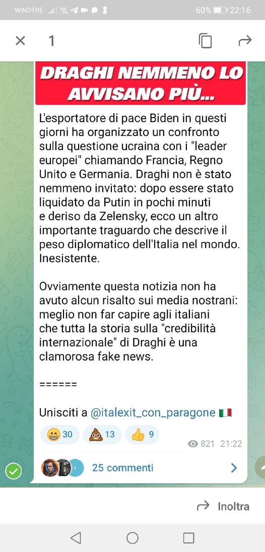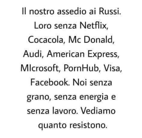 (..) – la guerra in Ucraina brucia più mediatori che Salvini candidati al Colle. La Germania ci prova, ma arranca. Macron ha un filo diretto con Putin, ma per ora senza successo. Israele si è mossa, ma chissà. La Turchia potrebbe raggiungere qualche oviettivo, vediamo se l’incontro Lavrov-Kuleba porterà a qualche risultato. Incombe, invece, la Cina. Che oggiContinua a leggere “froci col culo altrui”