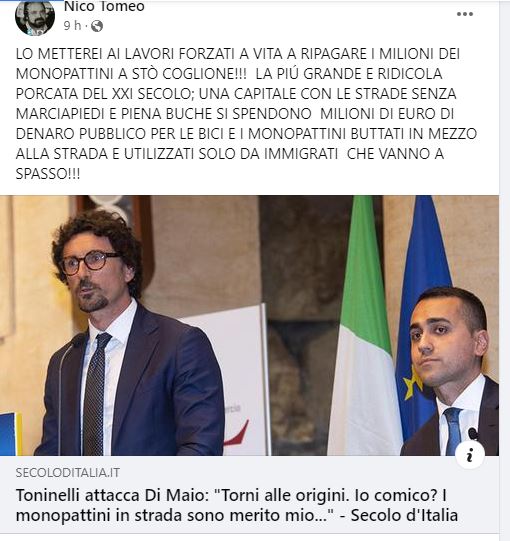 QUELLO A SINISTRA ORGOGLIOSO DICHIARA : “I MONOPATTINI SONO MERITO MIO ! ” E NON LO RICOVERANO !! NICO TOMEO da fessbook