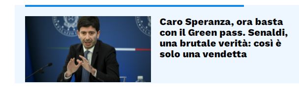 Enrico Mentana guida la protesta dei sì vax a Roberto Speranza: Green pass, “discriminazione per gli over 50” Esplora: Alessandro Gonzato 16 febbraio 2022 Enrico Mentana guida la protesta dei sì vax a Roberto Speranza: Green pass, “discriminazione per gli over 50” 00:00 Che l’obbligo vaccinale per gli over 50 e la conseguente esclusione dal lavoroContinua a leggere “demenziale !!!”