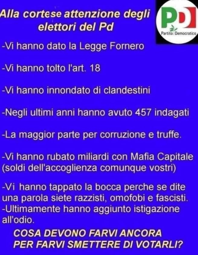 SONO CONVINTI DI VOLER E DOVER FARE QUELLO CHE PASSA LORO PER LA SCATOLA DELLE SCARPE CHE HANNO SUL COLLO . NON QUELLO CHE GLI ELETTORI VOGLIONO !!