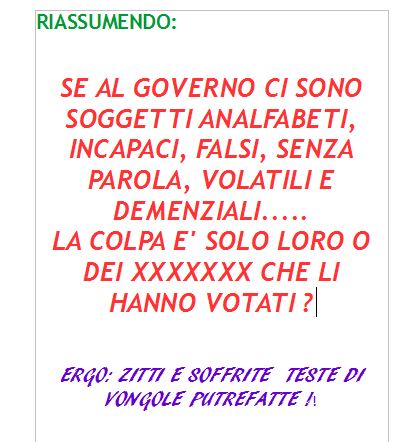 UN POPOLO DI CAPRE S’E’ FATTO ABBINDOLARE DA PIFFERAI PAGLIACCI SENZA PAROLA…. GIUSTO CHE ORA SIA SODOMIZZATO !!